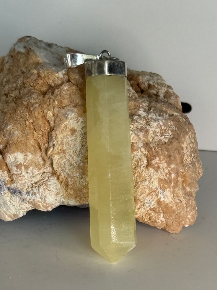 Lemon Calcite Crystal Point Pendant, 925 Sterling Silver